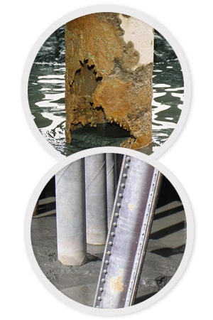 PILECAP, Inc.offers the strongest structural repair in the marine industry for application on steel pile repair regardless of size or shape. This patented PILECAPSystem is designed to repair severely corroded or damaged steel piling. The structural jacket becomes a permanent form for strength and durability by bearing the pile's intended load while eliminating corrosion and preventing further damage to the pile.